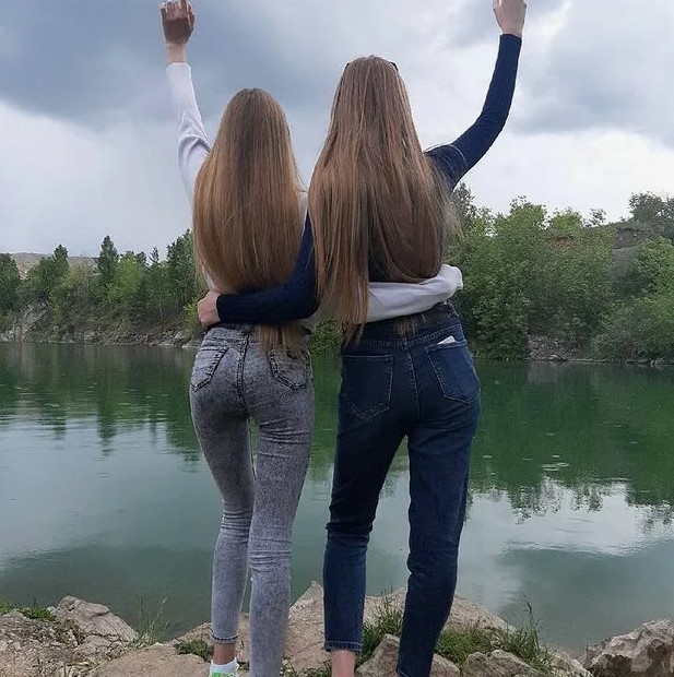 Девушки с длинными волосами в джинсовых шортиках